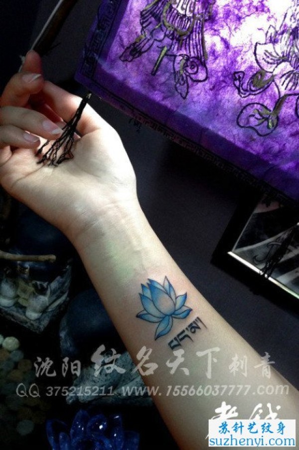 手臂的彩色莲花纹身_臂部纹身图案大全_纹身图吧