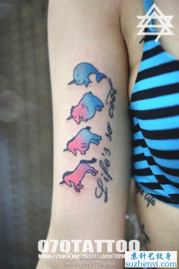 手臂小独角兽纹身_臂部纹身图案大全_纹身图吧