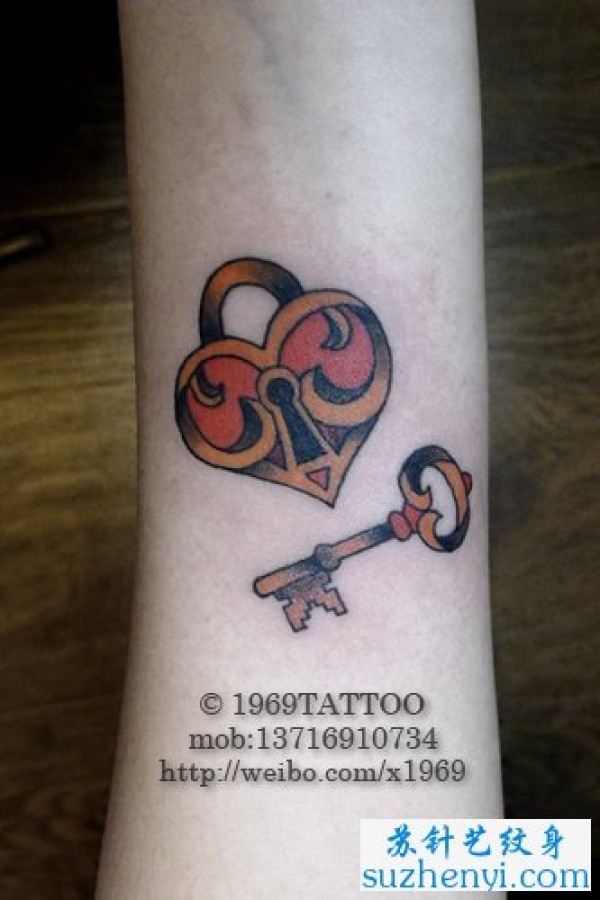 手臂爱心锁与钥匙纹身_臂部纹身图案大全_纹身图吧