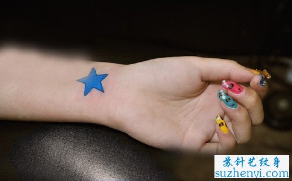 手臂的彩色小五角星纹身_臂部纹身图案大全_纹身图吧