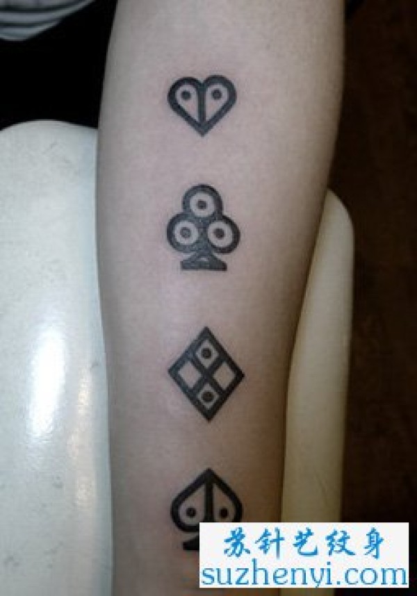手臂黑桃方片梅花红心纹身_臂部纹身图案大全_纹身图吧
