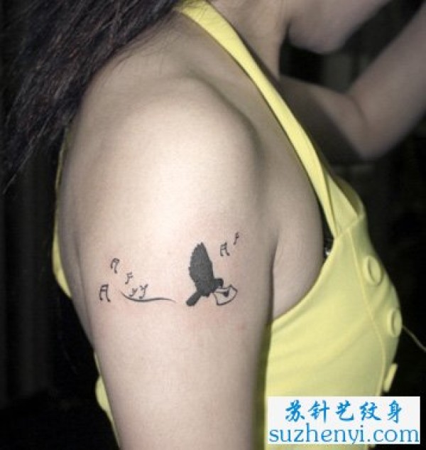 手臂好看的音符与小鸟纹身_臂部纹身图案大全_纹身图吧