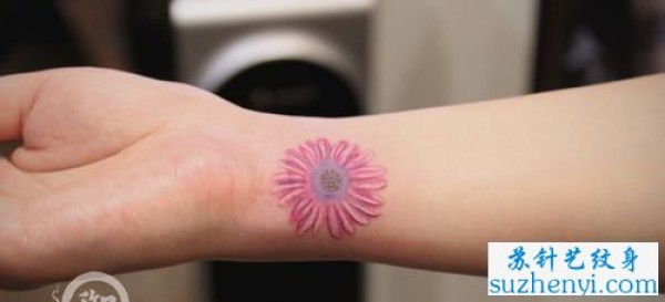 手臂彩色小邹菊纹身_臂部纹身图案大全_纹身图吧
