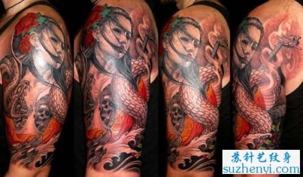 手臂古典美女蛇纹身_臂部纹身图案大全_纹身图吧
