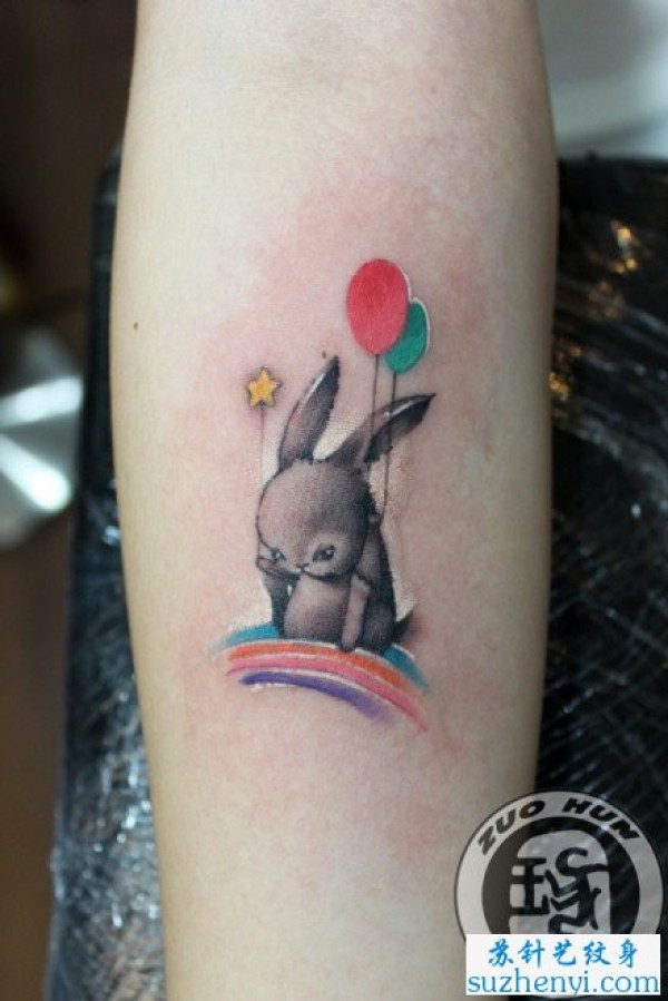 手臂可爱的拿气球的小兔子纹身_臂部纹身图案大全_纹身图吧
