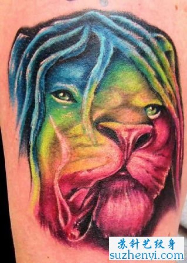 手臂彩色狮子头纹身_臂部纹身图案大全_纹身图吧