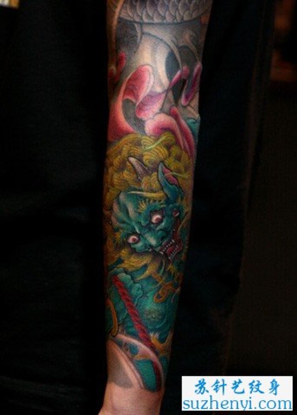 手臂唐狮纹身图_臂部纹身图案大全_纹身图吧