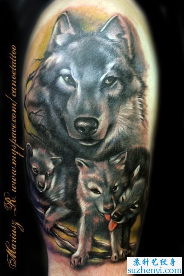 手臂时尚帅气的狼头_臂部纹身图案大全_纹身图吧
