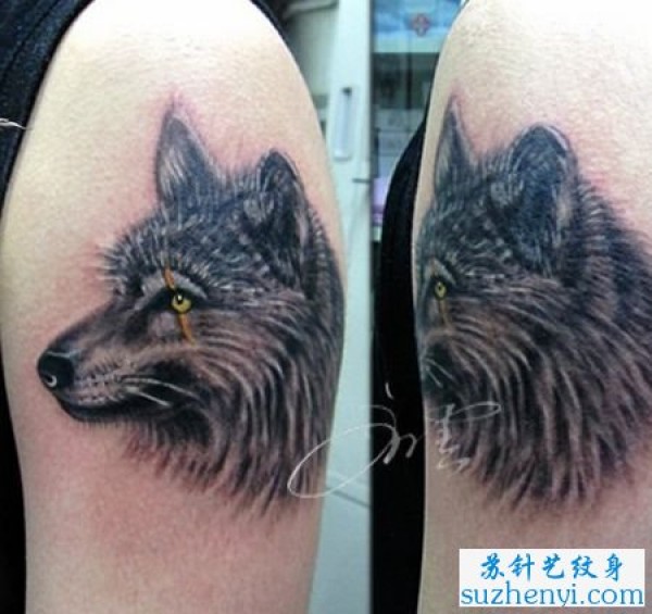 一枚时尚帅气手臂狼头纹身_臂部纹身图案大全_纹身图吧