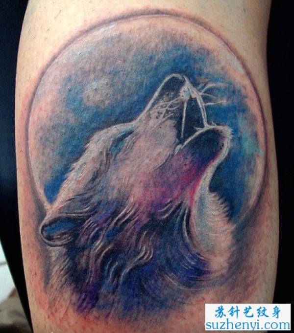 大臂彩色狼头_臂部纹身图案大全_纹身图吧