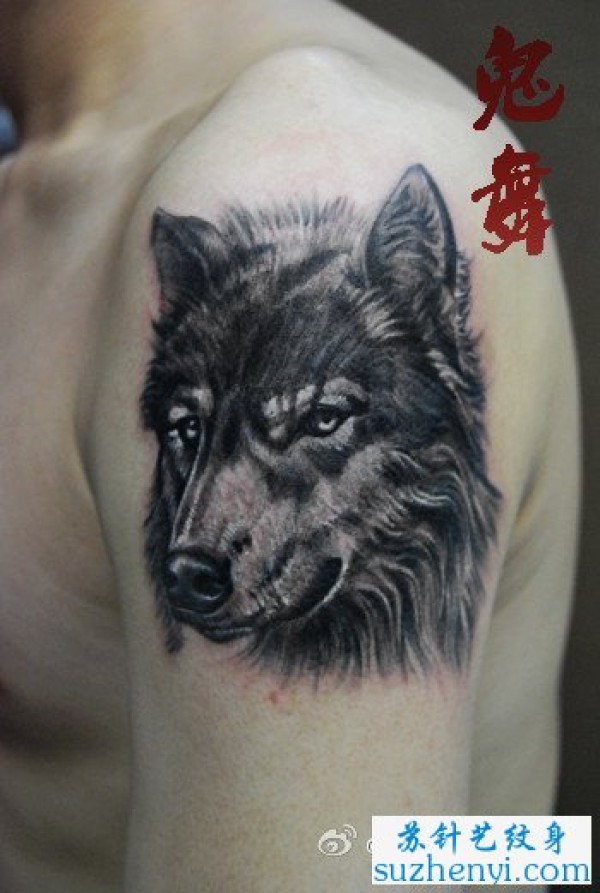 手臂一枚脸部严肃的狼头纹身图案_臂部纹身图案大全_纹身图吧