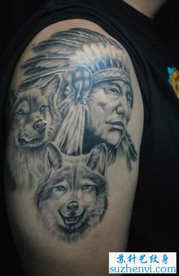 手臂印第安人狼纹身_臂部纹身图案大全_纹身图吧