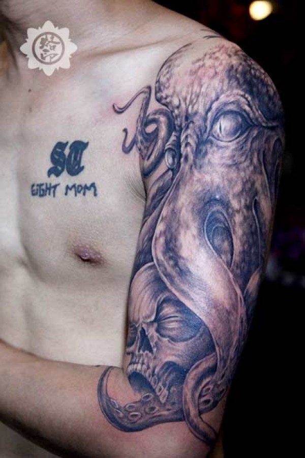 包臂黑暗章鱼纹身图案_臂部纹身图案大全_纹身图吧