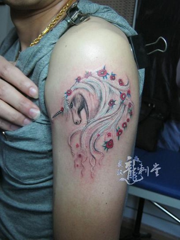 大臂梦幻独角兽纹身_臂部纹身图案大全_纹身图吧