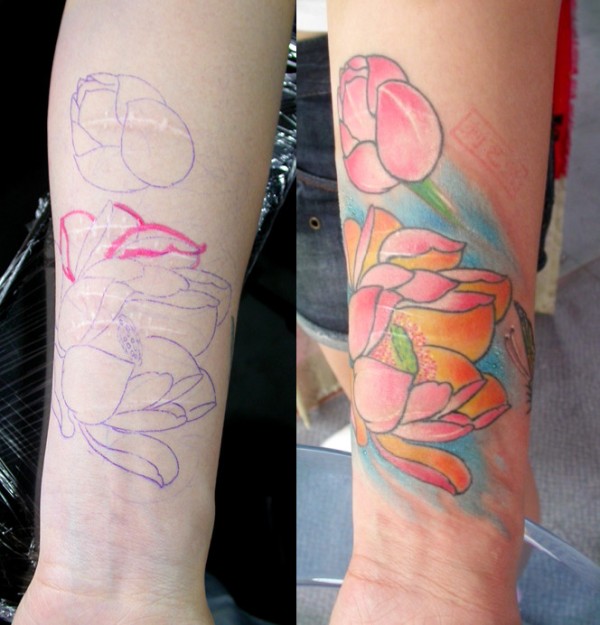手臂荷花盖疤_臂部纹身图案大全_纹身图吧