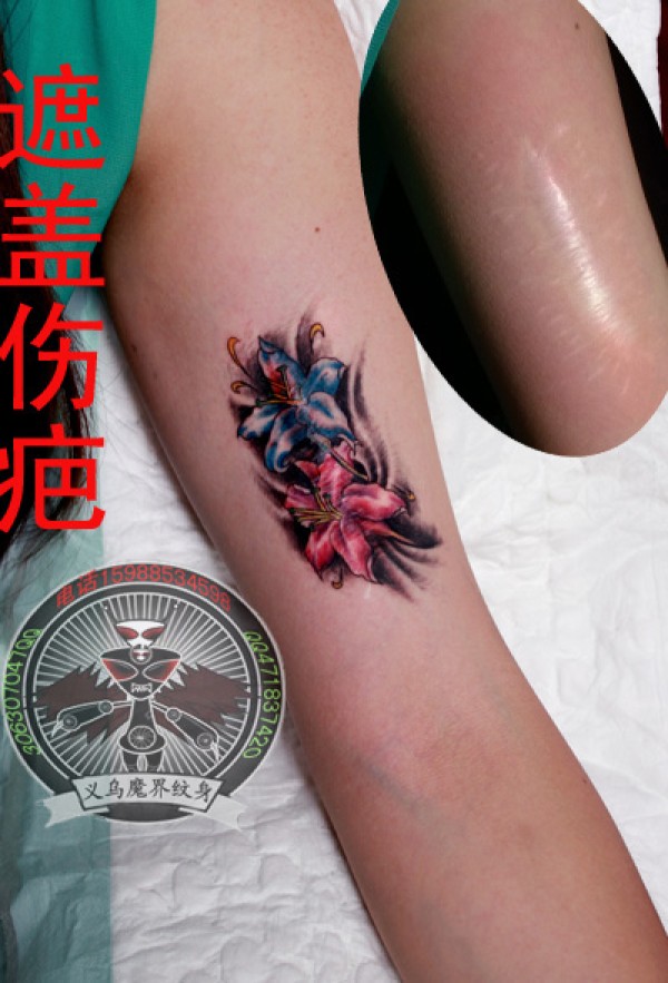 百合花遮盖手臂烫伤疤痕纹身_臂部纹身图案大全_纹身图吧