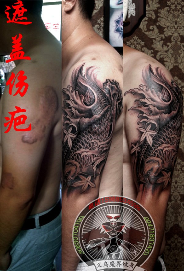 鱼遮盖手臂凸起疤痕纹身_臂部纹身图案大全_纹身图吧