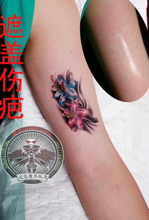 百合花遮盖手臂疤痕纹身_臂部纹身图案大全_纹身图吧