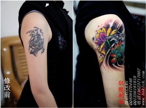 修改上臂莲花纹身遮改作品价格 多少钱 哪里可以_臂部纹身图案大全_纹身图吧