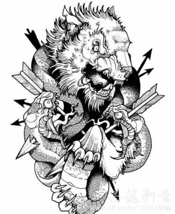 龙纹身手稿_一组老传统黑灰龙手稿纹身图案