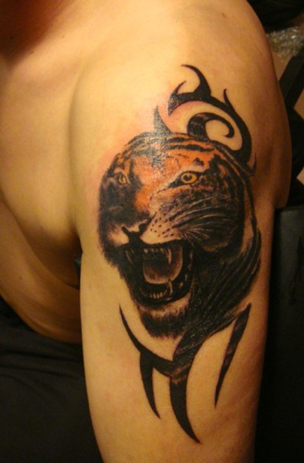 手臂老虎头纹身_臂部纹身图案大全_纹身图吧