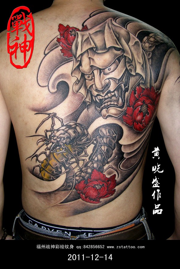 男人后肩背超酷的盔甲般若纹身图案_般若纹身图案大全_纹身图吧