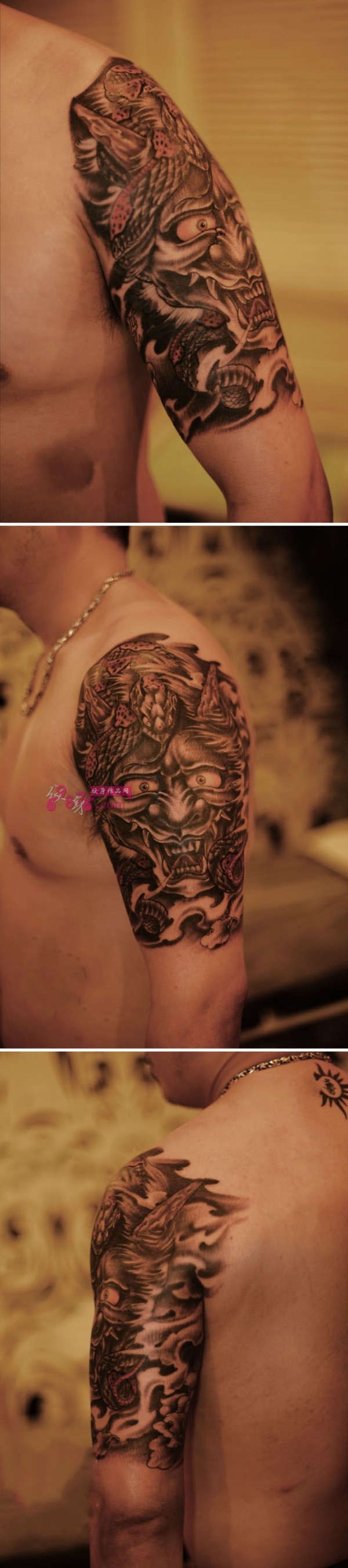 男人后肩背超酷的盔甲般若纹身图案_般若纹身图案大全_纹身图吧