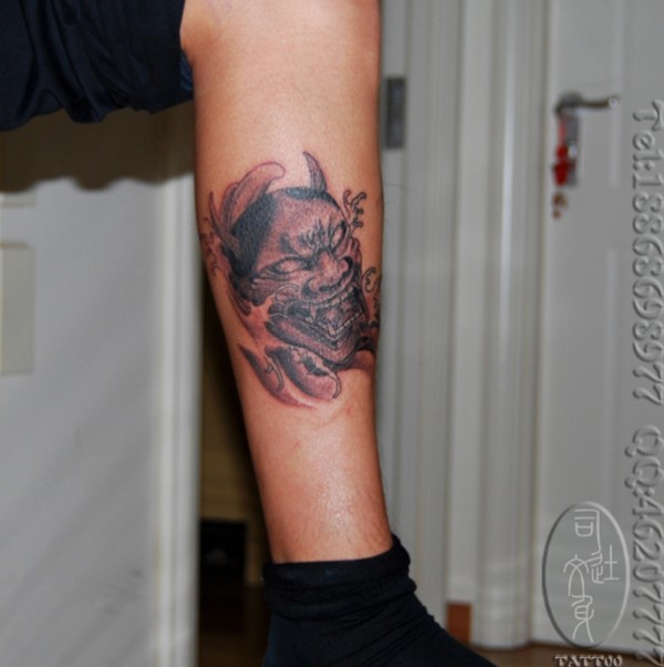 男人腿部经典帅气的黑灰般若纹身图案_般若纹身图案大全_纹身图吧