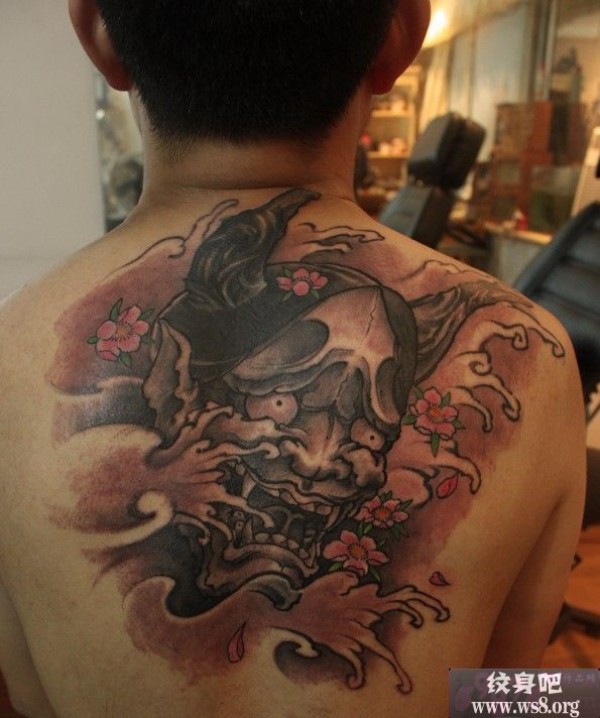 男人后肩背超酷的盔甲般若纹身图案_般若纹身图案大全_纹身图吧