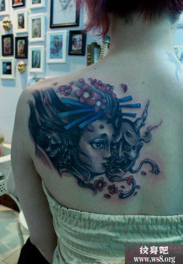 女生后背霸气艺妓般若图案_般若纹身图案大全_纹身图吧
