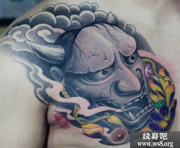 男人后肩背超酷的盔甲般若纹身图案_般若纹身图案大全_纹身图吧