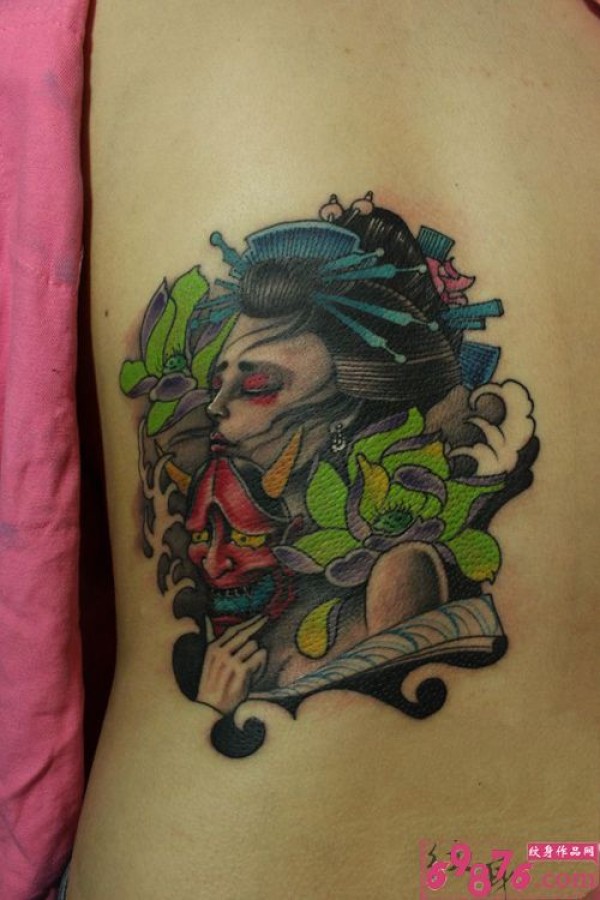 艺妓般若面具创意纹身_般若纹身图案大全_纹身图吧