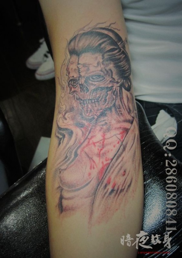 手臂一款经典很酷的欧美彩色般若纹身图案_般若纹身图案大全_纹身图吧