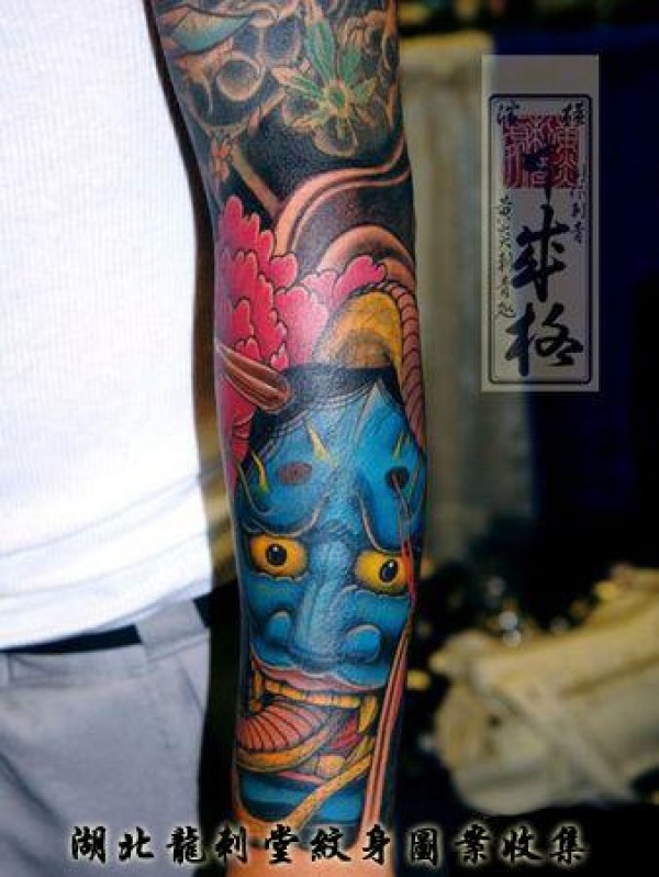 手臂一款经典很酷的欧美彩色般若纹身图案_般若纹身图案大全_纹身图吧