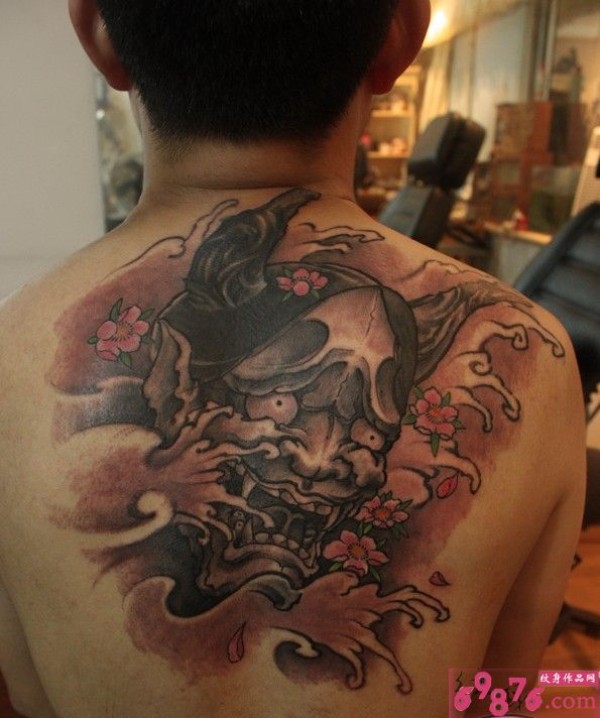 男人后肩背超酷的盔甲般若纹身图案_般若纹身图案大全_纹身图吧