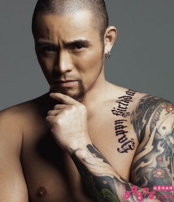 型男霸气披肩般若英文纹身_般若纹身图案大全_纹身图吧