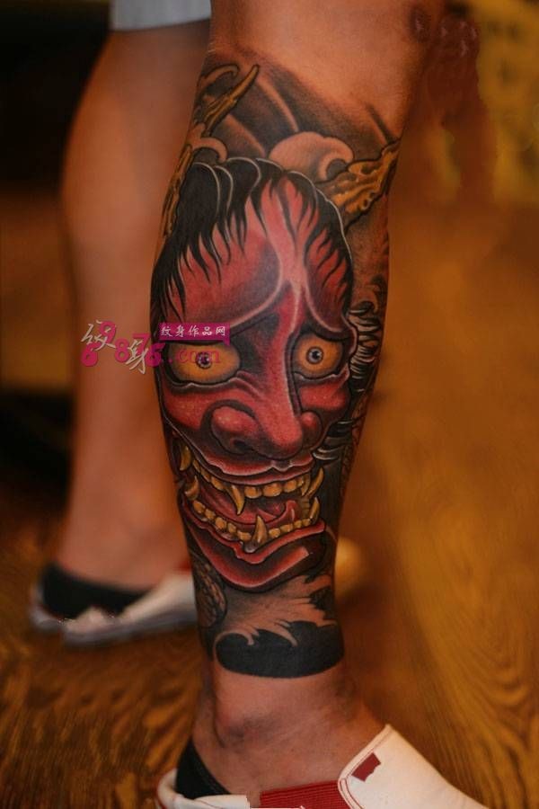 男人腿部时尚霸气的一款般若纹身图案_般若纹身图案大全_纹身图吧