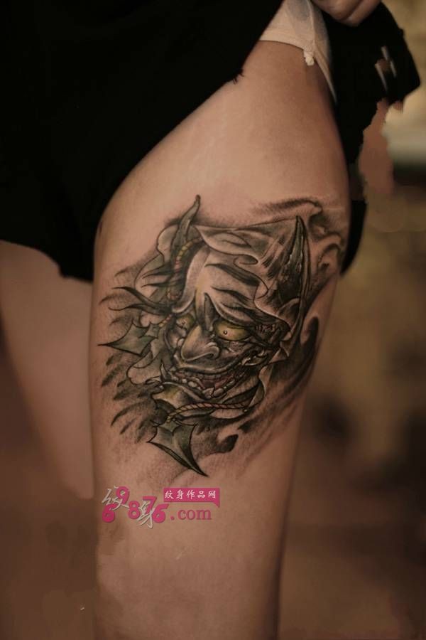 美女传统般若大腿纹身_般若纹身图案大全_纹身图吧