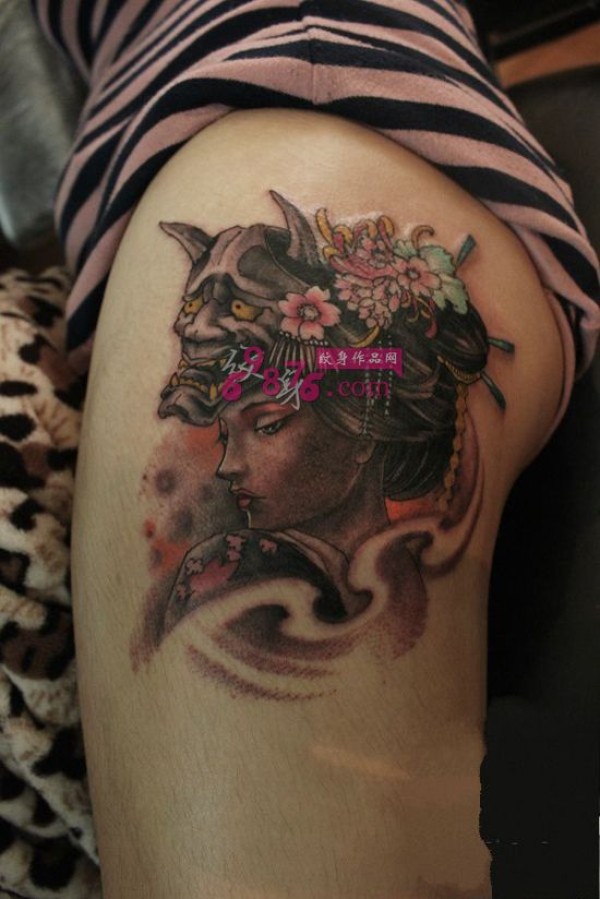 般若艺妓美女大腿纹身_般若纹身图案大全_纹身图吧