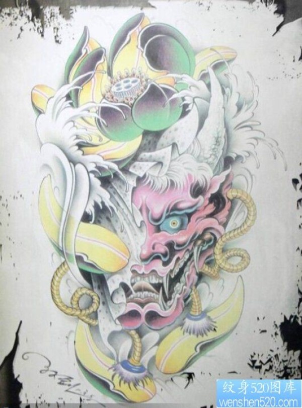 一款彩色般若莲花纹身图案_般若纹身图案大全_纹身图吧