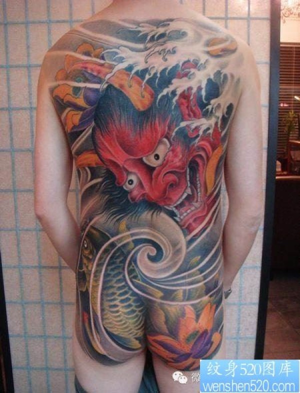 满背彩色般若鱼纹身图案_般若纹身图案大全_纹身图吧