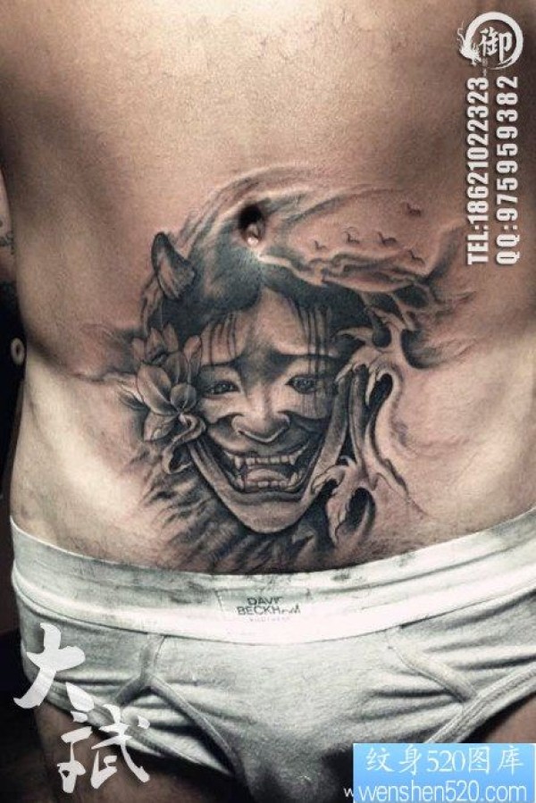 男生腹部霸气超酷的般若纹身图片_般若纹身图案大全_纹身图吧