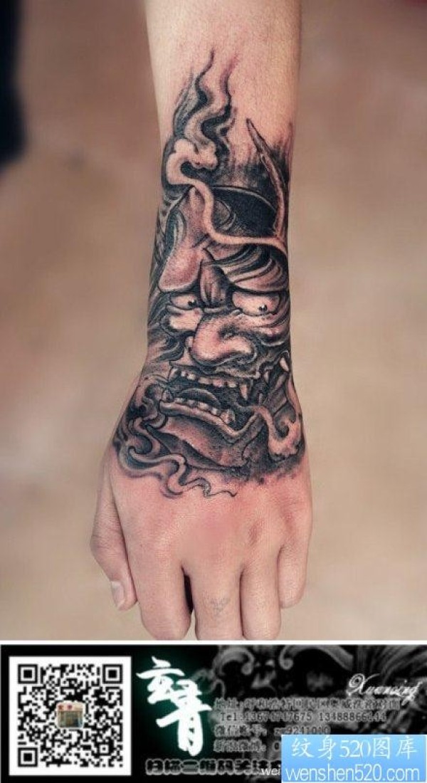 手腕一款潮流经典的黑灰般若纹身图案_般若纹身图案大全_纹身图吧