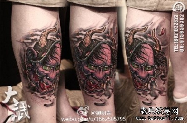 男人腿部时尚霸气的一款般若纹身图案_般若纹身图案大全_纹身图吧