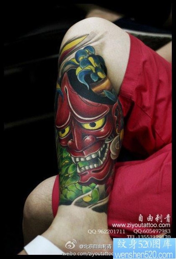 腿部帅气潮流的彩色般若纹身图案_般若纹身图案大全_纹身图吧
