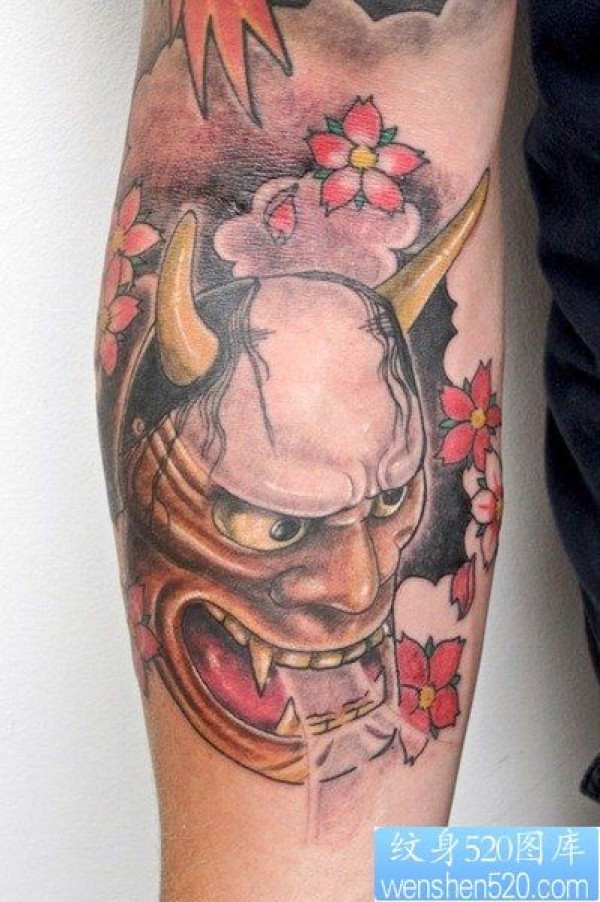 手臂一款经典很酷的欧美彩色般若纹身图案_般若纹身图案大全_纹身图吧