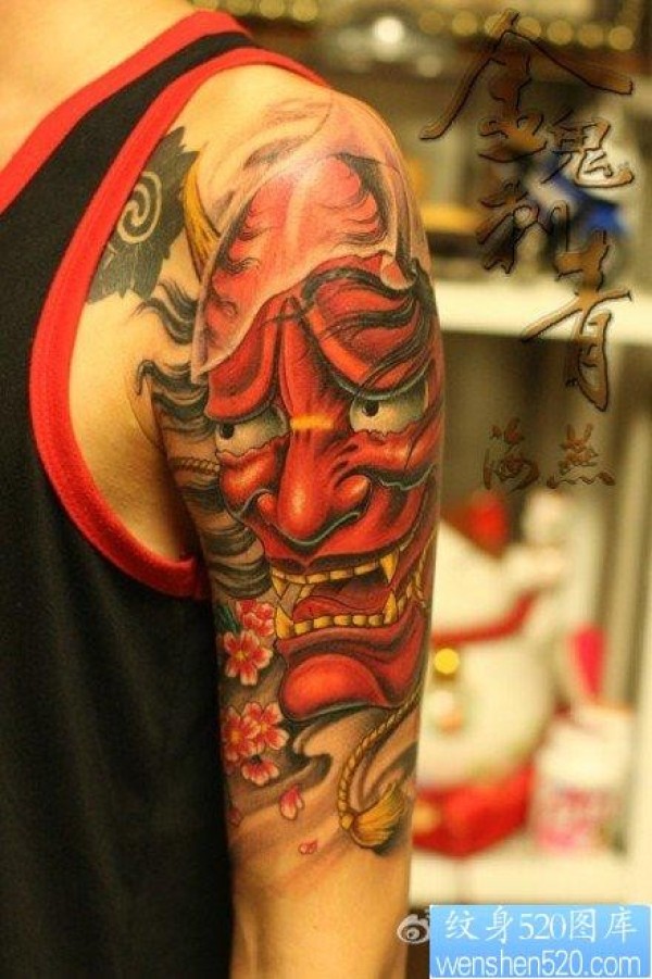 手臂经典帅气的彩色般若纹身图片_般若纹身图案大全_纹身图吧