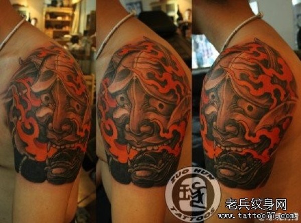 男人后肩背超酷的盔甲般若纹身图案_般若纹身图案大全_纹身图吧