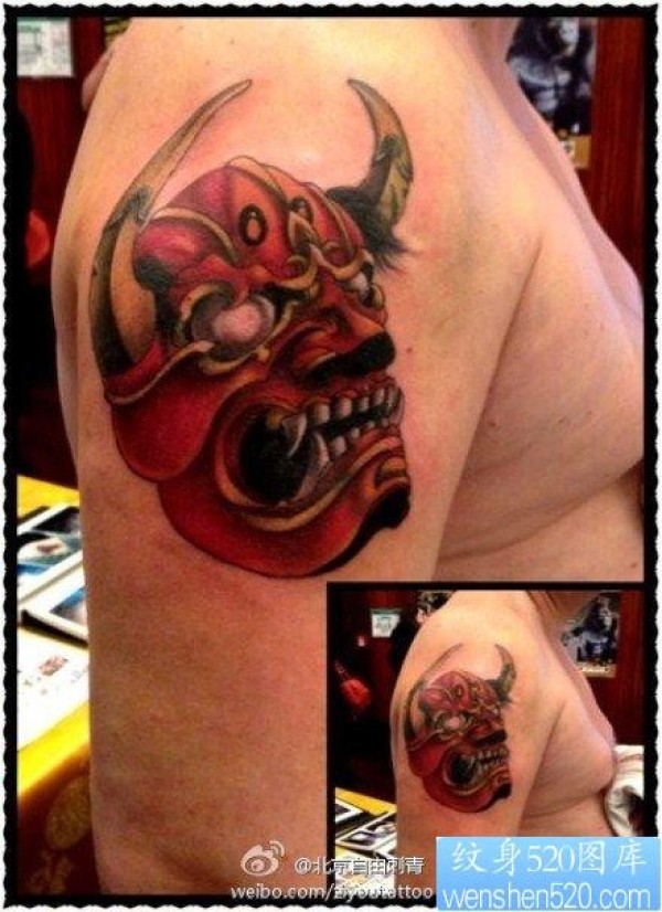 男人后肩背超酷的盔甲般若纹身图案_般若纹身图案大全_纹身图吧