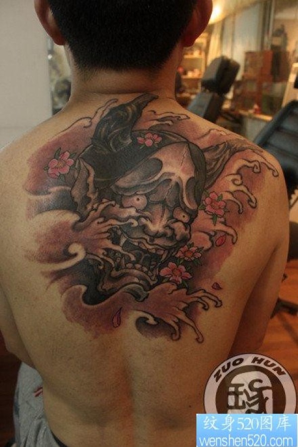 男人后肩背超酷的盔甲般若纹身图案_般若纹身图案大全_纹身图吧